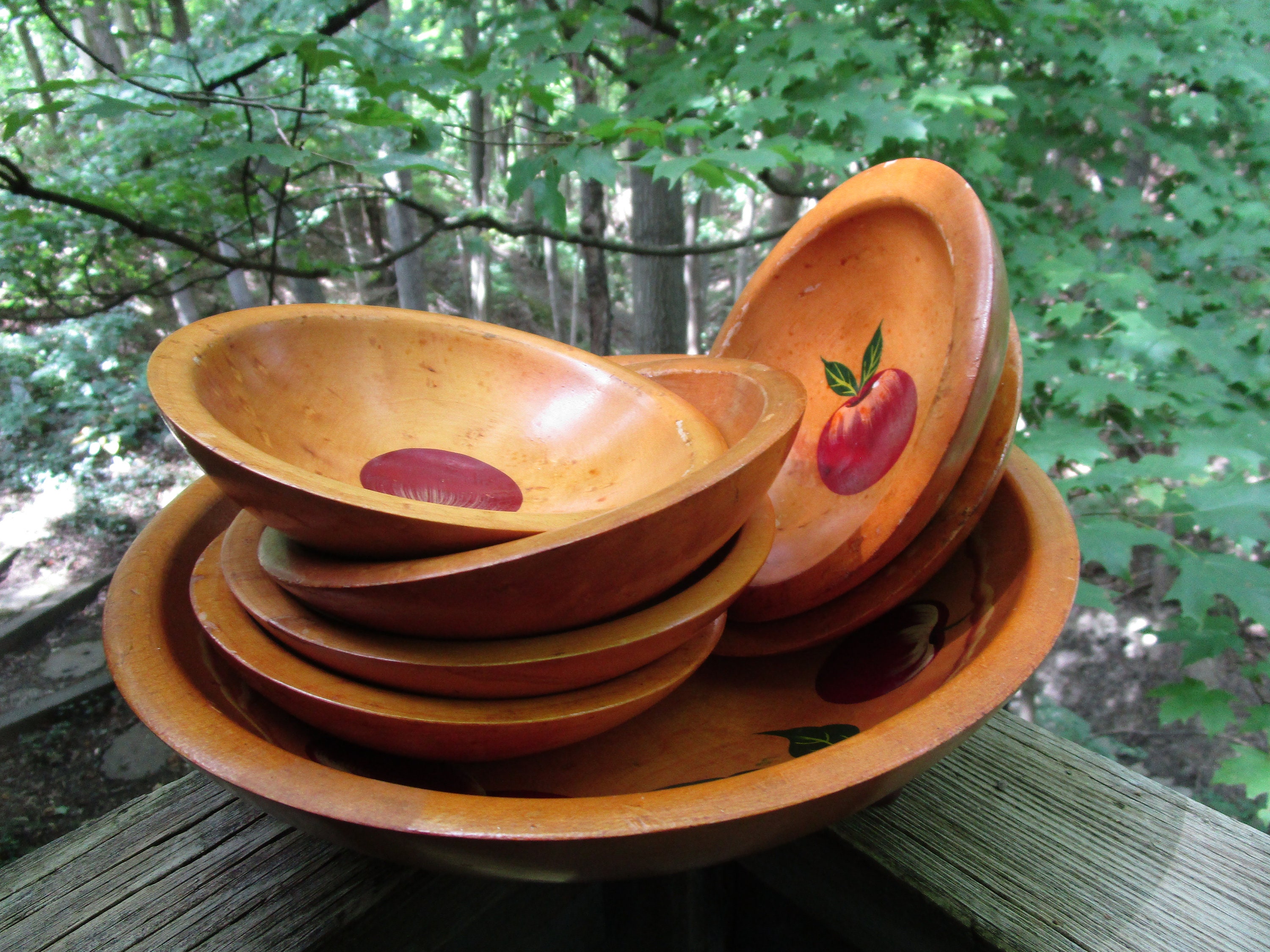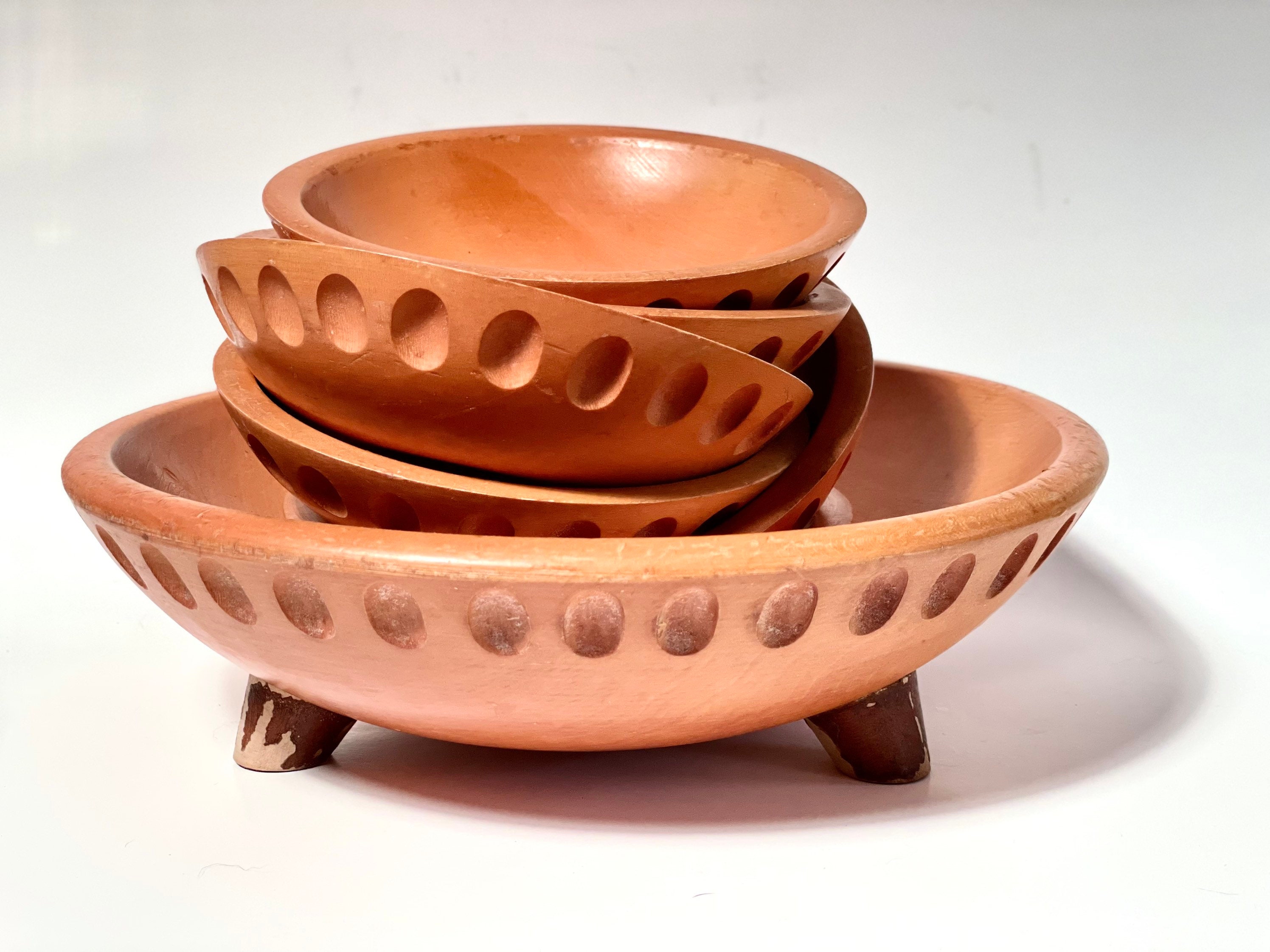 Wooden Munising Bowl Set Vintage 1930s Munising Footed Carved Wood Salad Bowl Set Bowl Set Wooden Salad Bowl Salad Bowls Set